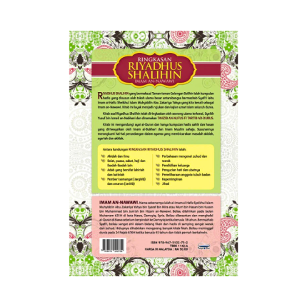 SINOPSIS RIYADHUS SHALIHIN yang bermaksud Taman-taman Golongan Solihin ialah kumpulan hadis yang disusun oleh tokoh ulama besar antarabangsa bermazhab Syafi‘i