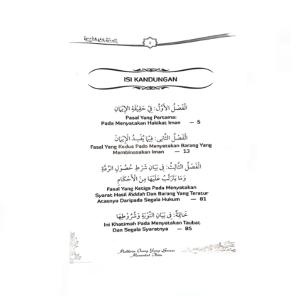 ISBN:Â 9789670579317 M/S:Â 103 Kitab ini dipercayai dikarang oleh Syeikh Muhammad Arsyad al-Banjari. Keseluruhan kandungannya menyentuh aqidah Ahli Sunnah wa