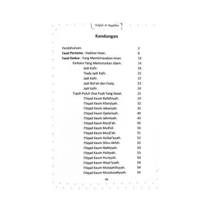 ISBN:Â 9789670597300 M/S:Â 103 Kitab ini dipercayai dikarang oleh Syeikh Muhammad Arsyad al-Banjari. Keseluruhan kandungannya menyentuh aqidah Ahli Sunnah wa